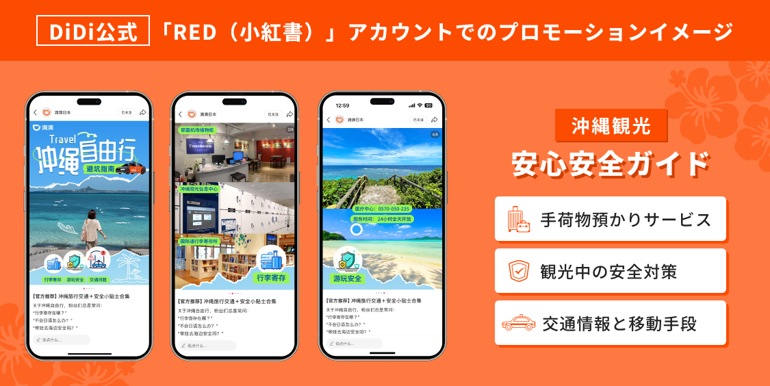 ・公式SNSでの広報:ディディ公式「RED(小紅書)」アカウントを通じ、安心・安全に沖縄旅行を楽しむための方法やおすすめ情報を発信します。